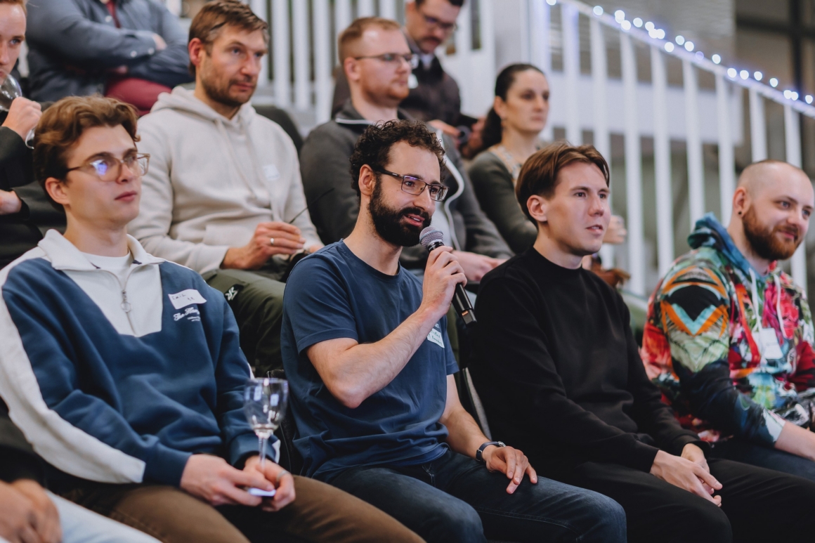 The heart of the night was networking, meeting old friends but also a fireside chat on building side projects, featuring Rainer Sternfeld, //kood Co-Founder and Managing Partner at Nordic Ninja, in conversation with our moderator Mart Maasik, //kood Advisor and General Partner at Nordic Science Investments.