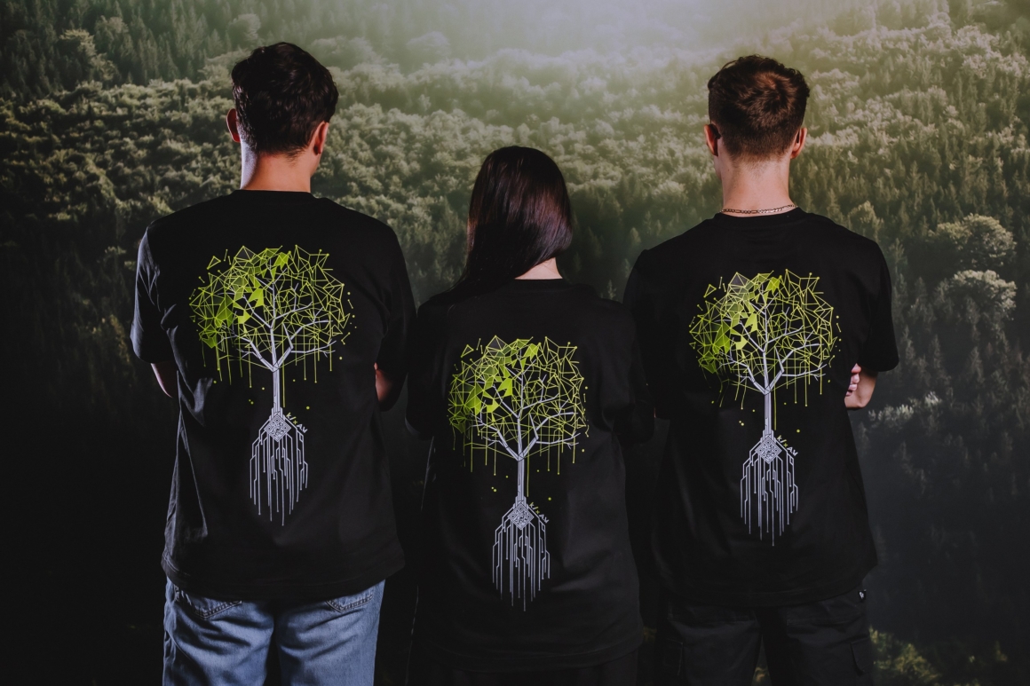 That’s when the tech-tree concept emerged. The roots represent students coming from diverse backgrounds. The stump – the QR code – symbolizes the school itself as both foundation and gateway. The trunk reflects the shared journey through the programme. The branches show students diverging into different specializations and careers. The gradient leaves represent alumni graduating and new students beginning – like a tree shedding leaves and growing new ones each year. The “tech-apples” are a nod to the successful engineers and entrepreneurs the school helps grow.