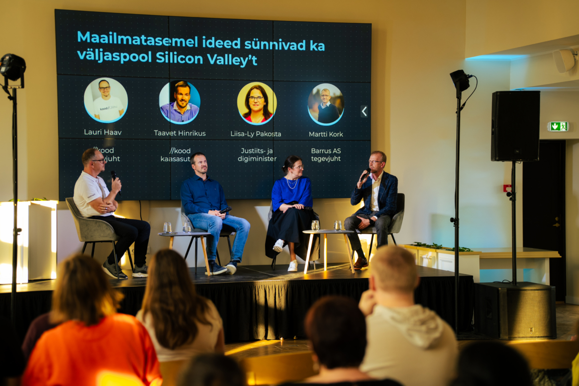 The evening also featured a panel discussion moderated by //kood’s CEO Lauri Haav, with the minister, //kood co-founder Taavet Hinrikus, and Martti Kork, CEO of Barrus.