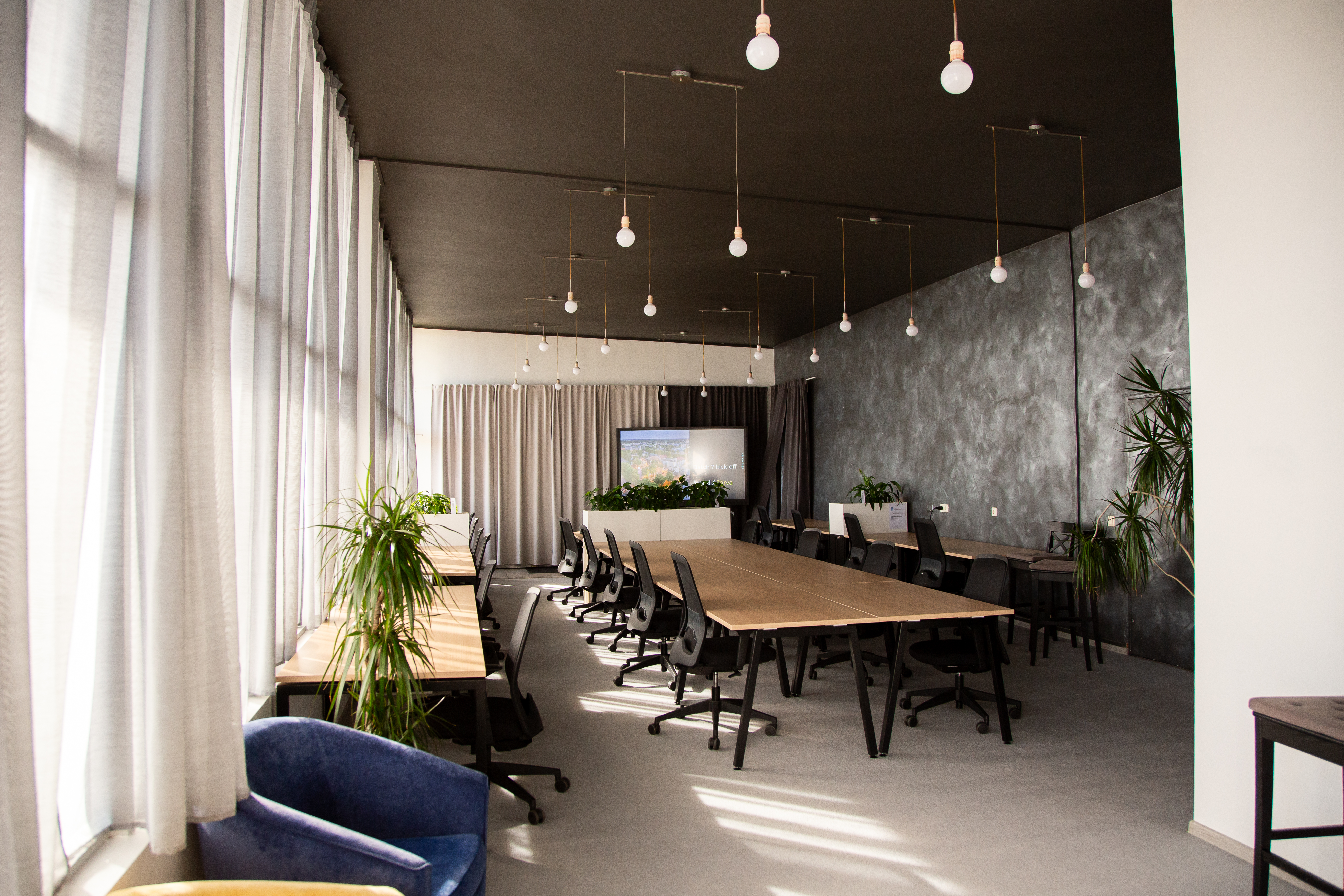 For now, studies take place temporarily on the fourth floor of the building, where there is a co-working area with desks and chairs.